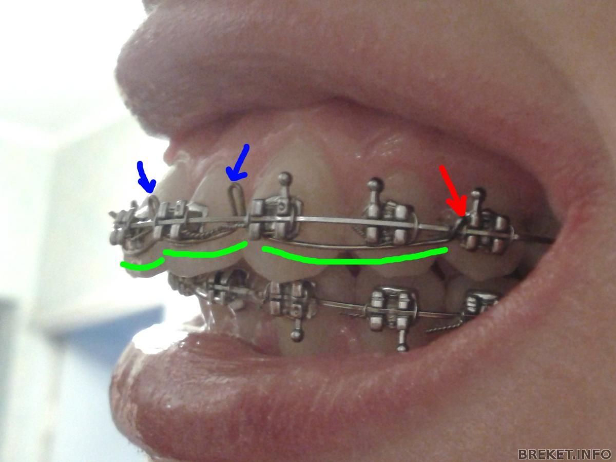 зеленым показаны те части пружины, которые давят на зубы и наклоняют их)