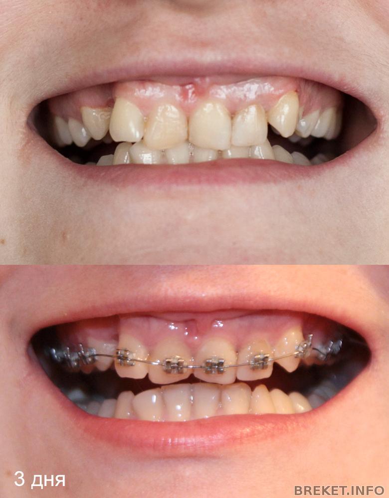 Надо было это сделать очень давно, но жалко было удалять 2 здоровых зуда. И вот в декабре 2014 у меня случайно откололся под корень верный клык, который пришлось удалить потом (так как был пульпированный и нельзя было нарастить). Пошла к ортодонту и убедилась, что можно удалить с другой стороны 4ку и ставить брекеты. Так как помимо кривых зубов еще и прикус неправильный. Пролечила все зубы, удалила 4ку, сделала чистку и установила брекеты. Зубы не болели, только при надавливании первые 3 дня была боль, а потом и все прошло. Натирали сильно дуги неделю, а последние 2 дня уже не трут. С первого дня замеила легкое перемещение зубов)