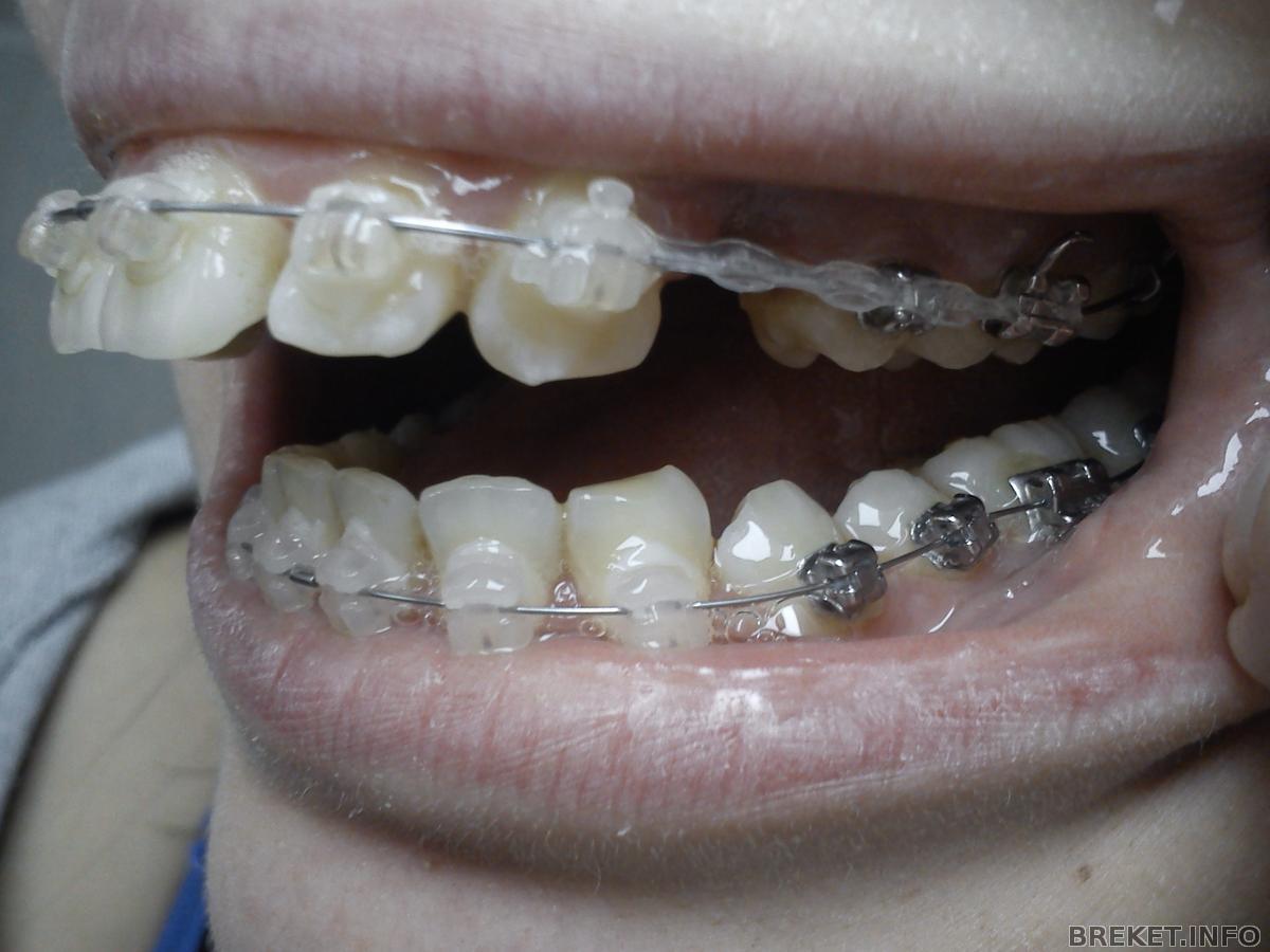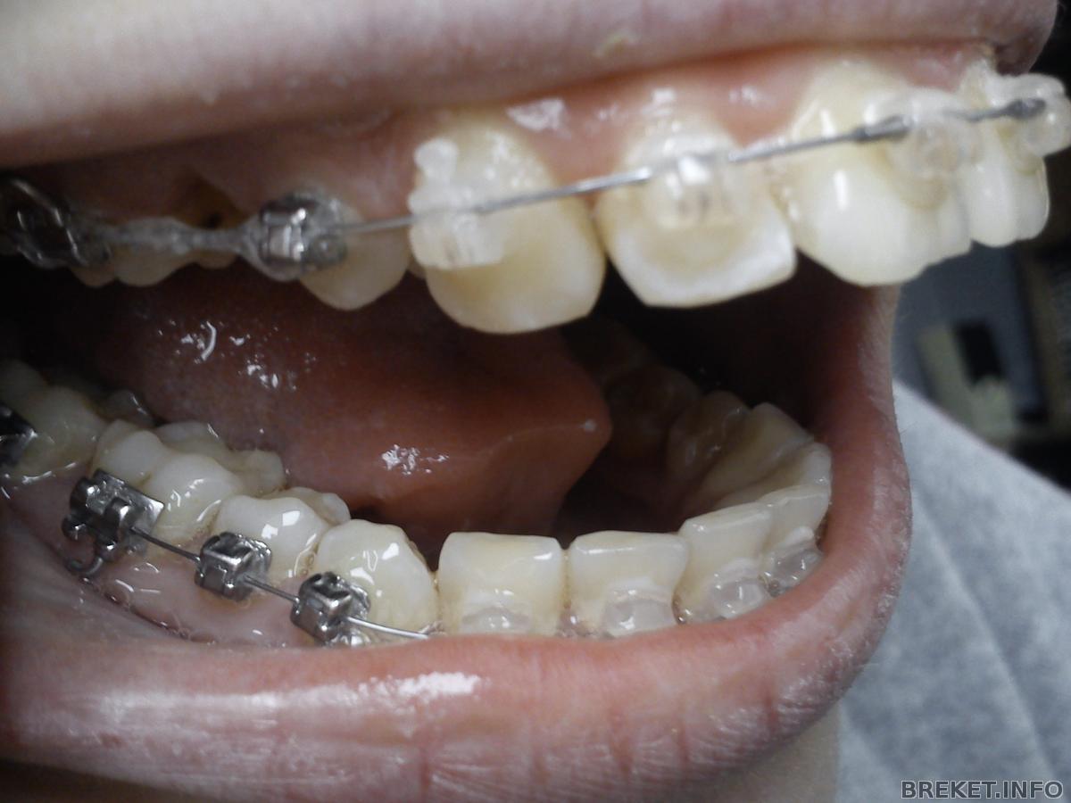Значит после эластичных цепочек (кстати, тянут зуб они только неделю, потом только держат) в январе мне поставили железные пружины и проволоку которую закручивают для регулировки давления и за 2 месяца клык с одной стороны сдвинулся на пару миллиметров и с другой стороны четвёрка пол пути прошла, закрывая щель. Сегодня на приёме, мне поменяли дугу на нижней челюсти и на верхней затянули сильней крепление, чтобы клык встал на место, а с четверки всё сняли, так как её развернуло и нам нужно, чтобы она вернулась на место.