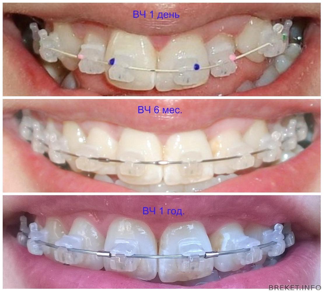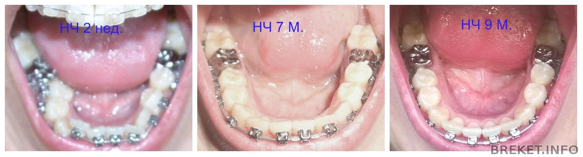- на НЧ на шестерках стоят металлические коронки, к которым припаяны замки, а после окончания лечения их заменят на керамические.