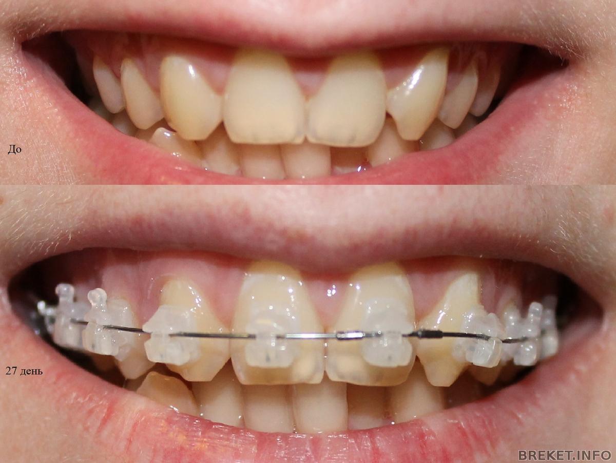 а тем более после столь малозаметных брекетов на ВЧ железный низ можеит разочаровать своей заметностью. Я в целях сэкономить 6 тысяч подумывала о металле, но я дама самокритичная, решила поставить керамику. Когда я увидела металлические брекеты на 4ках и 5ках, и представила что таковых был бы полон рот (они ж даже не светлые как алюминий, а темные, чуть не черные, короче очень заметные по сравнению с керамикой), я была счастлива что сделала правильный выбор и ужасалась, представляя, что было бы, поставь я метал... Хотя понятно что: или мучилась бы, или отдала бы по 1500 за 6 брекетов, потребовав переклейки переднего металла на керамику.