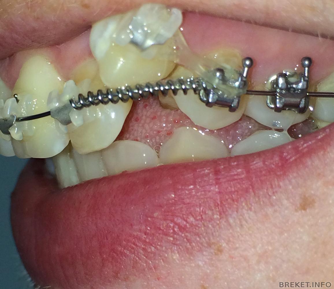 Честно говоря, сам процесс смены дуг показался мне адом, было ооооочень больно, так как двойка очень чувствительная сейчас, даже языком больно дотрагиваться, а тут дугу менять!!!!....В общем, это был тихий ужас. Надо отдать должное моему врачу, которая очень аккуратная и старалась как можно быстрее и безболезненней это дело провернуть. Подключили клык (который в носу). Наверно, это правильно называется эластик, его зацепили за клык и за тройку, чтобы он начал разворачиваться и по-тихоньку спускаться вниз. Результат за столь короткое время меня радует, на следующем приеме (22 мая) она сказала, что скорее всего будем подключать 7-ки и клык к дуге. Кстати, дуга 16 и что-то она там с ней поделала и сказала, что дуга будет стремиться расширять зубной ряд. Прошу прощения за цвет зубов (сигареты, кофе и черный чай) очень стыдно(((