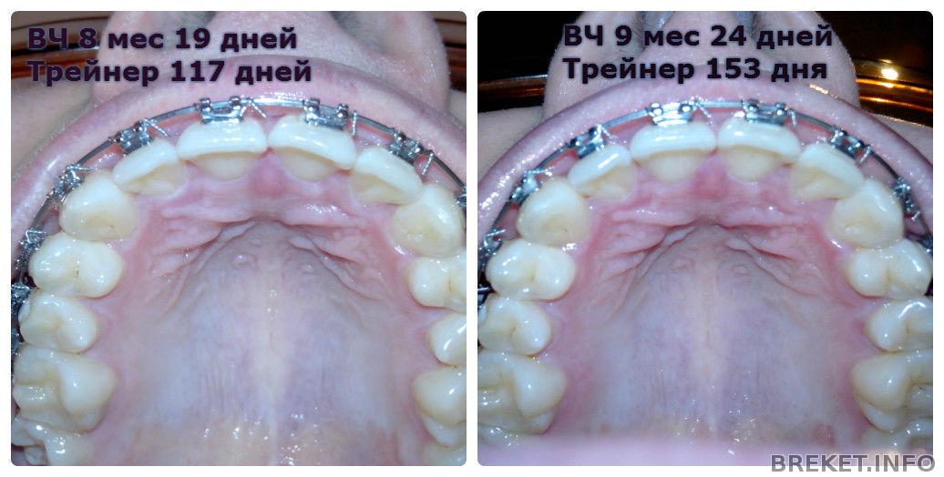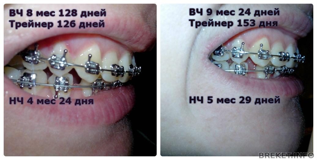 Скоро низу пол года. Ни какой фантастики. Мне еще на днях показалось как поносила трейнер 4 часа... зубы стали по др стоять. Сейчас на коллаже видно, что беззубый прикус выравнивается. ( хотя зубов 30)- 2 восьмерки.