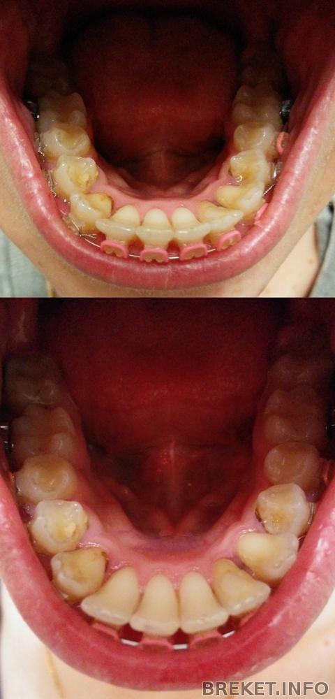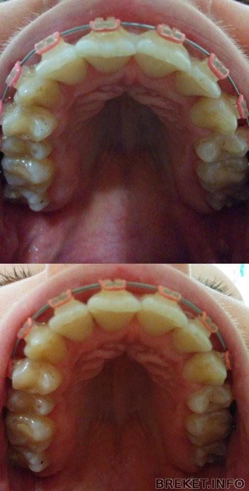 Моим брекетам сегодня 5 месяцев) еле заставила себя написать этот пост для отчетности. За прошлый месяц результаты меня не очень радуют. Зубы на НЧ никак не хотят стать в правильное положение. Меня это реально задолбало. Пятерка не поворачивается, четверка не поднимается, семерки-шестерки вообще не двигаются. Такое ощущение, что БС там просто зря стоит. Очень не хватает металлических лигатур на проблемных зубах. Не знаю, зачем орт их снял… наверное пожалел мои зубы после первой смены дуги. А вот не надо было. Из-за этого четверка, которая раньше ооочень медленно, но поднималась, в этом месяце вообще никаких успехов не сделала. Зато брекеты на семерках меня не мучили, так как они это делали на ВЧ) но семерочки большие, и вообще не поворачиваются. Я как-то раньше и не замечала, что левая семерка вообще круто повернута не в ту сторону