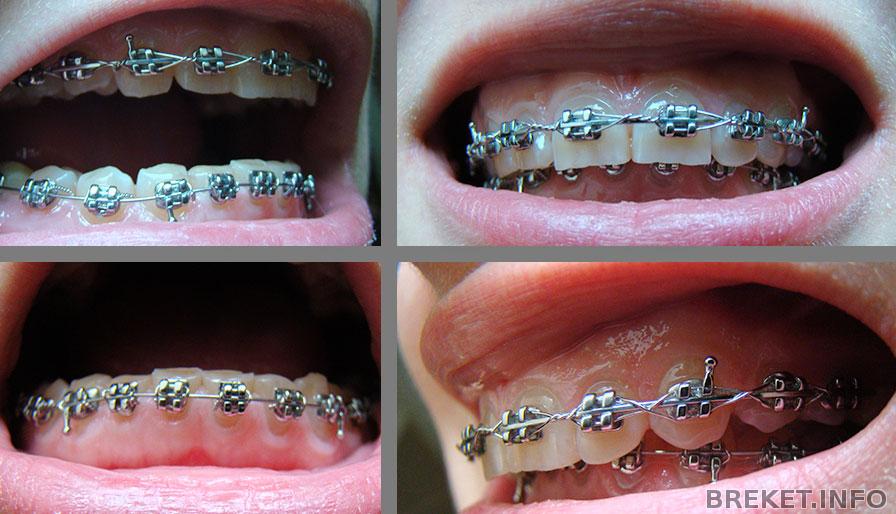 Металлический чейн между разными зубами по-разному заплетен. Интересно, почему так? ) Там, где больше перекрутов, больше давление дуги в паз и исправление наклона зуба?