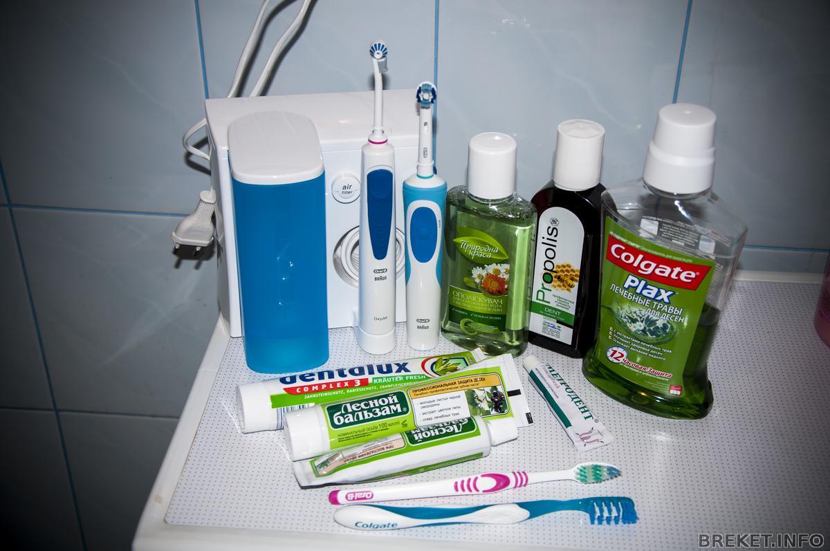 Брекеты я еще не ношу. но уже много лет я тестирую разные пасты,щетки и ополаскиватели. Всегда ищу чтото хорошее и эффективное. Вот пол года назад я преобрела ирригатор и щетку на аккумуляторе. Многие говорят что я маюсь дурью. И они вообще не понимают зачем я их так чищу. И вопросы, а что это за ШТУКОВИНА у тебя в ванной, мне уже надоели.