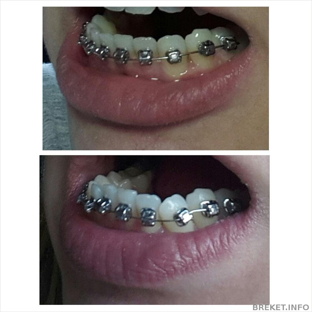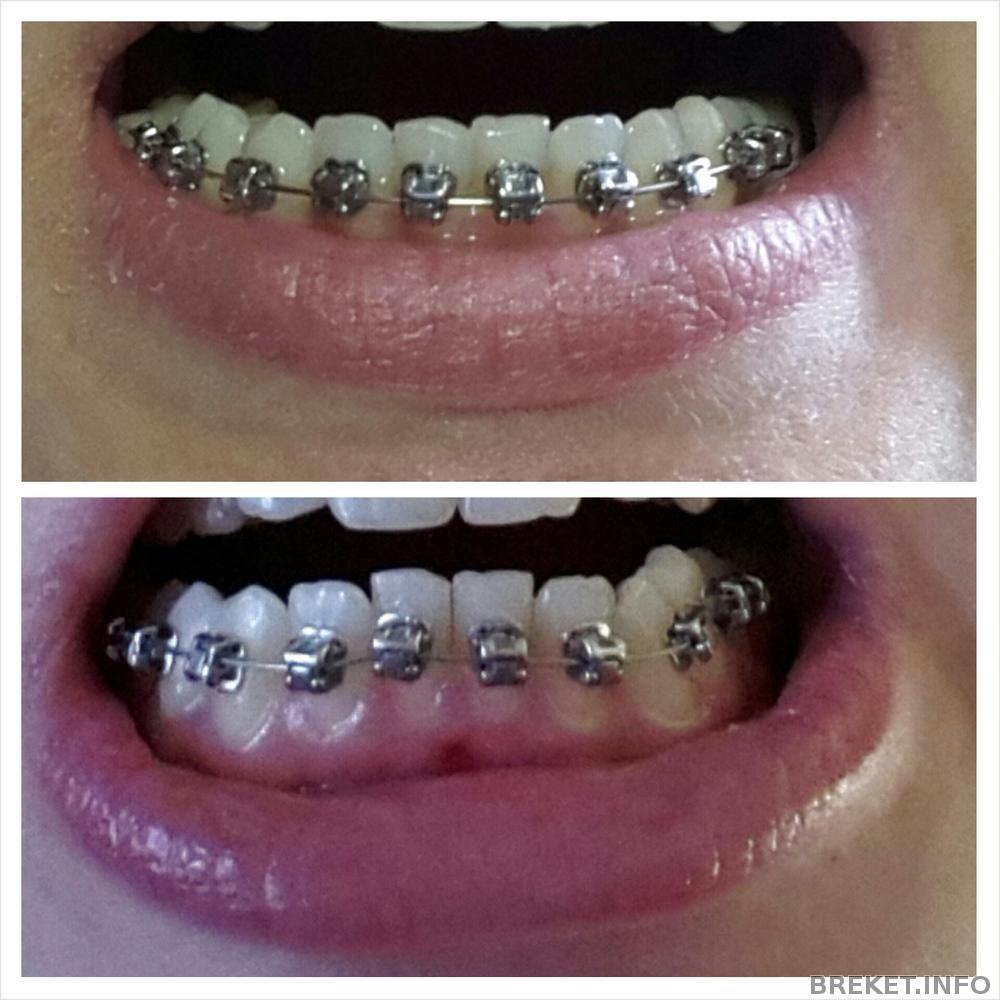 Здравствуйте, дорогие брекетоносцы! Сегодня 4 месяца и 11 дней моего брекетоношения. Поменяли сегодня верхнюю дугу 0,18 на Niti 0,16/0,22. Все стянуло, но пока не болит. Нижнюю дугу орта решила пока не менять. Удивилась, как встал нижний левый клычок: "фантастика!"