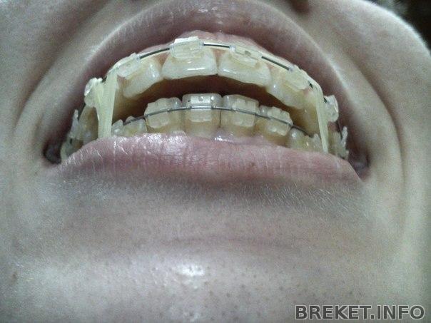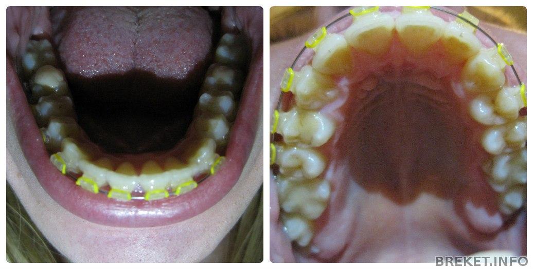 Еще в прошлый раз орт снял дугу с одной двоечки на ВЧ, потому что она наклонилась назад от зубного ряда, видимо, через тяги. и она сразу уехала внутрь в челюсть, хотя была длиннее другой. Вот так было до и в день приема: