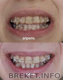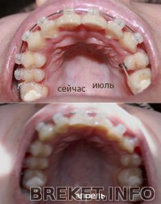 и ещё когда улыбаюсь теперь нет перекоса сильного как было раньше!!! очень рада этому думала не исправится, оказалось что брекеты и это исправляют!