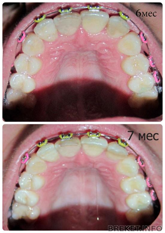 Пожаловалась орту на единичку мою бедную, которая с самого дня установки уехала назад. Он на нее посмотрел и сказал, что конечно, может еще над ней поколдовать, но в общем то, она стоит в ряду, просто в силу своей толщины ( мне ее наращивали, она получилась очень толстой, перед установкой орт ее подпиливал), которая все-же осталась больше и кривизны- ровно она не встанет. Мне ее все-рано переделывать, тогда и сделают ровно и по дуге. Чтож, посмотрим