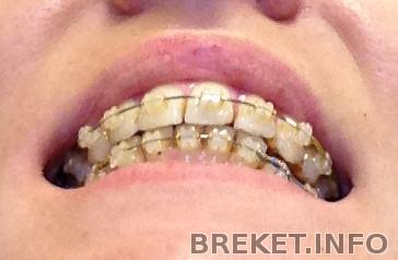 Иногда, к сожалению, фото не сделала, лигатуры одевали не резиновые, а из закрученной проволоки. Это тоже весьма портило общий вид брекетов.