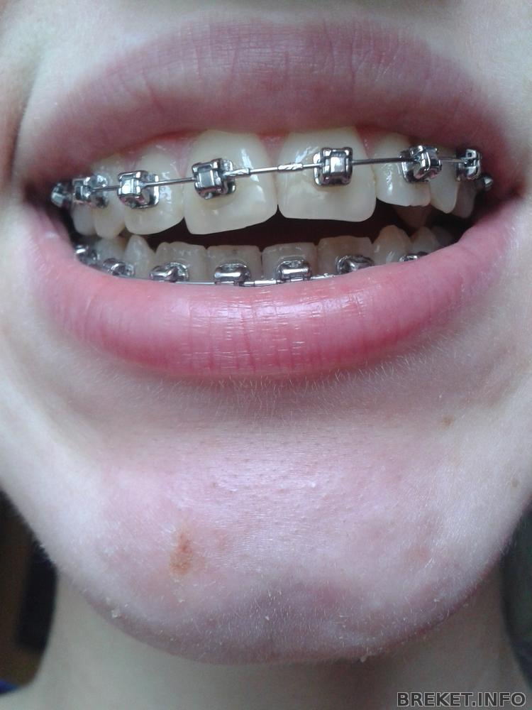 Он говорит, чего улыбаешься? Думаешь это здорово, и больно не будет? А я сижу и радуюсь, новый этап как-никак, и читала здесь, у других в дневниках о этих тягах, говорили, жаловались на ужасную боль, что эти тяги нужно каждый раз снимать перед едой, и иногда просто лень их одевать. Но мне все равно не нравится эта моя асимметрия во рту. Левый край задран, че то там мешает, однерки кривые.... Фотка, вот. Спросила у него, зачем нужны тяги. Он ответил, что дуги расширяют челюсть, зубы, а тяги помогают их наложить друг на друга. То есть, у меня исправится прикус. Господи, поскорее бы восьмое октября