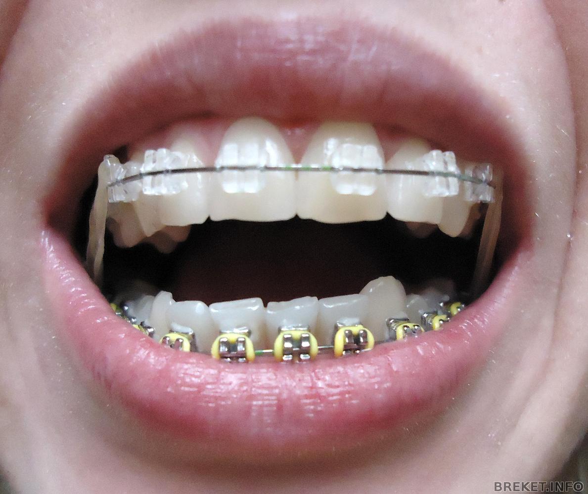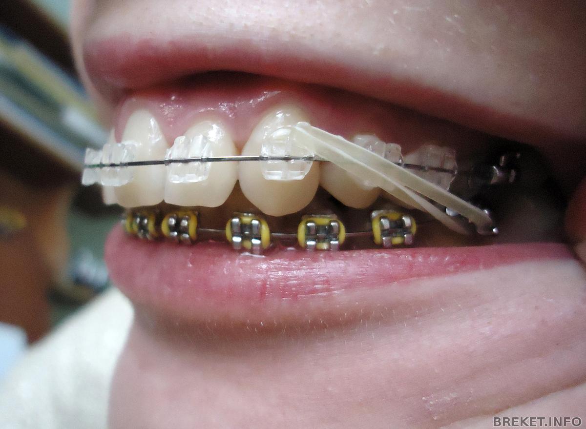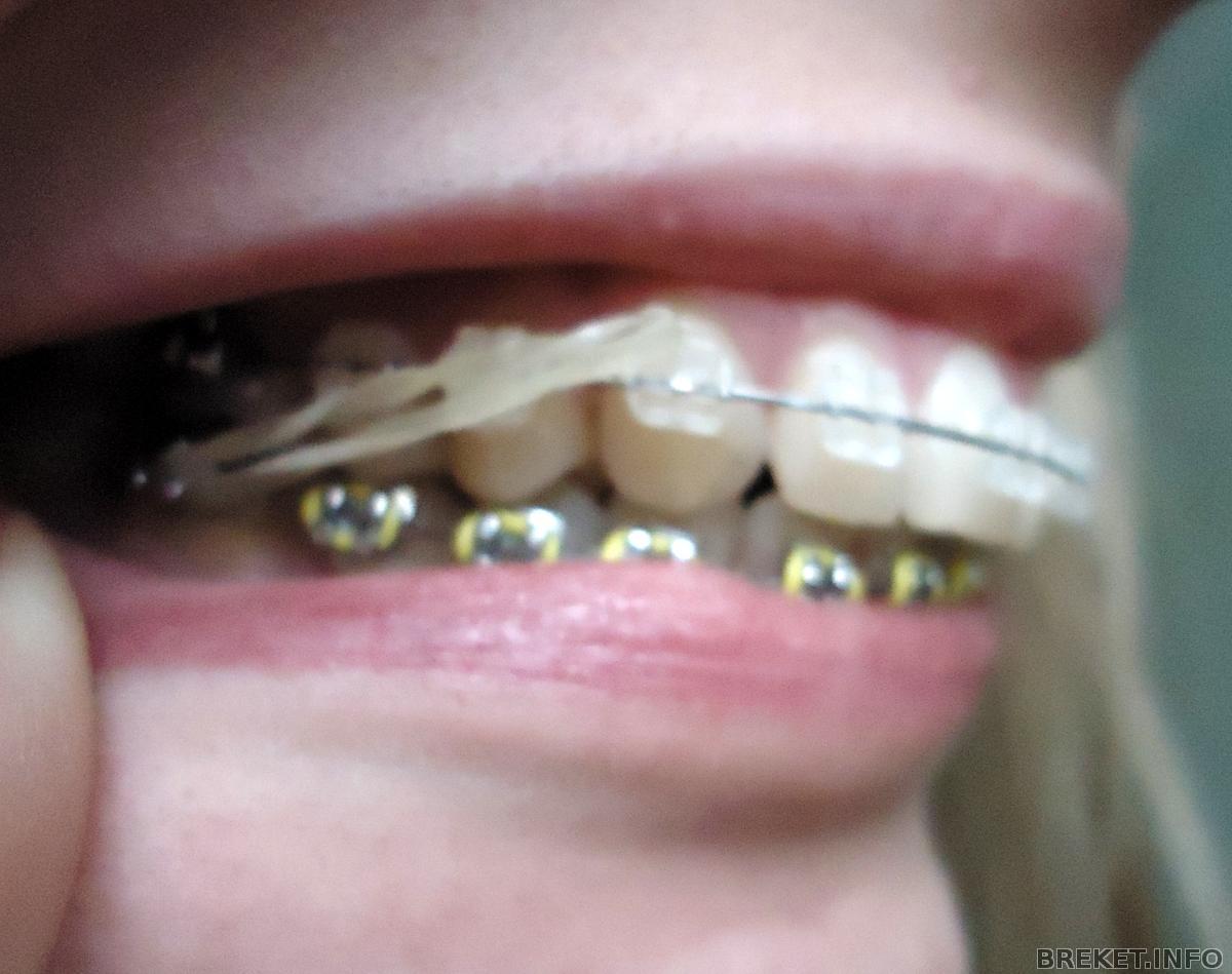 На этой коррекции мне поменяли дуги, теперь сверху прямоугольная дуга 16х22, снизу опять квадратная 16х16. В этот раз уже не белая дуга, а металлическая. Ортофея сказала, что она будет лучше для межчелюстных тяг, т.к облицовочная будет тормозить движение. Я особо и не сопротивлялась, т.к. до след. коррекции 6 недель, а кто носил белые облицовочные дуги, те знают о её свойствах со временем обдираться. В некоторызх случаях, когда надо было презентабельно выглядеть я их подкрашивала