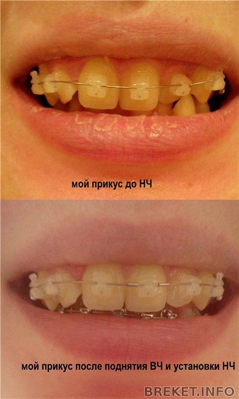 У меня глубокий был. НЧ поставили через 2 месяца после ВЧ, Подняли прикус с помощью надкусочных пломб, иначе бы все брекеты сбила))) Внизу у меня деймоны обычные металлические. Наверху керамика, но лучше металл тоже ставить (щас я бы именно так выбрала) - везде металл!)))