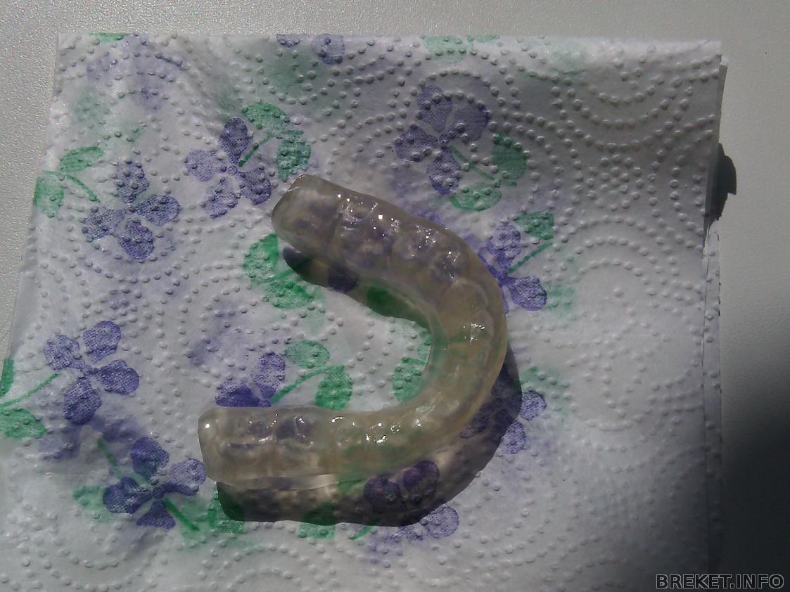 Она намного толще каппы. Альтернативные названия - сплинт, окклюзионная шина. Носить нужно было постоянно в течении 3 месяцев. Но я халявила - снимала во время еды и иногда днем сидела без нее по несколько часов. Тем не менее, на одном из приемов орт сказал, что смыкание изменилось и ситуация немного улучшилась. После этого я стала носить шину усерднее. Она доставляла мне большие неудобства. Подбородок все время находился в напряжении и смотрелось мое лицо неправильно, будто у меня какая-то челюстно-лицевая патология. Говорить нормально? Забудьте об этом! Все шипящие, а также "с" "ться" и другие смешаются в одну неразличимую массу звуков. Мы будете говорить так, будто вам удалили половину зубов. А говоря на английском - шикарный акцент впридачу