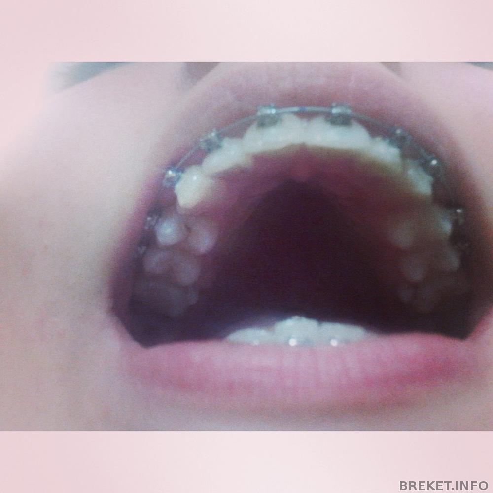 Так, НЧ - раньше один зубик стоял позади всех, и был ужасный пробел (его можно увидеть по предыдущим моим фото), в итоге мне ставили пружинку, растянули место для него, и вот, вошел) думаю, довольно-таки неплохо! с: