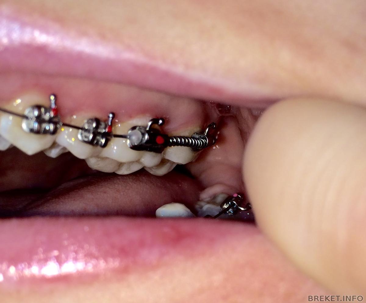 НО это еще не все! мне на ВЧ поставили пружинку между 6ой и 7кой, как объяснила мой орт, это для того чтобы по одному зубу двигать назад и освобождать место для моего кривыша и чтобы выровнять центр))