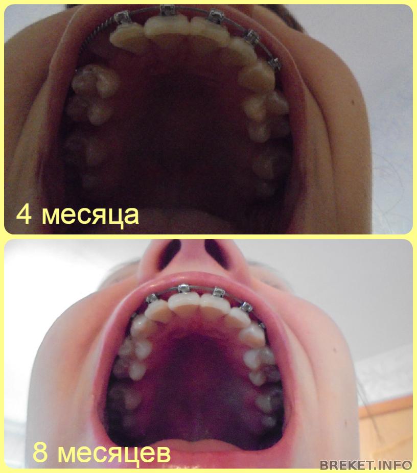 Снизу: дуга наоборот перестала быть дугой, но клык почти вернулся в ряд.