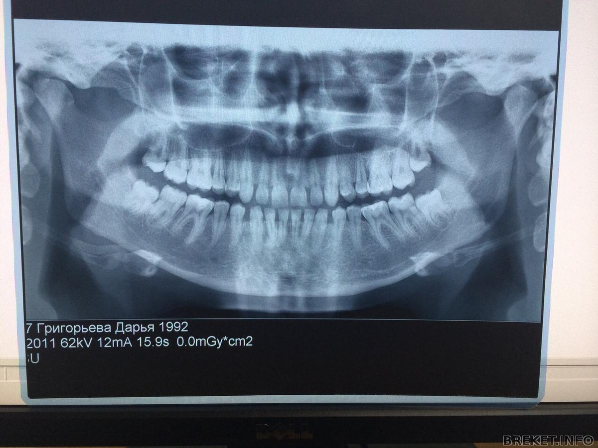 Меня зовут Дарья, мне 22 года, живу в Москве. Лет с 17 я решалась на брекеты и вот ура! это произошло, вчера налепили. У меня редкие зубки, то есть диастемы сплошь и рядом. Но при этом качество зубов, по версии не одного врача, отличное. Мучалась, думала, то говорили что разойдутся, то давайте лучше виниры, но я за сохранение своих зубов и за естественность. Два месяца занималась эстетикой перед установкой БС, вылечили 9! зубов, большинство с глубоким кариесом были, удалила все восьмерки, которые вылезли давно и корни их были ровные (тут мне просто повезло). Не скажу что я мучалась, я была готова ко всему, и по натуре терпеливый человек, так что и 4 пломбы за раз, и зубы мудрости мне удаляли по два, я даже была рада, что буду меньше есть) И вот сегодня, мой первый день с брекетами. Стоит керамика до клыков, пока только верхняя челюсть. Чувствую себя хорошо, совсем немного давит, хотя ночью задела случайно нижней челюстью и проснулась от дикой боли. Настрой боевой, и очень надеюсь на достижение прекрасной улыбки! Приложу пока только панорамный снимок, фотографии сделаю чуть позже.