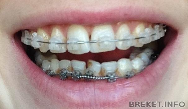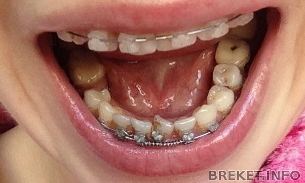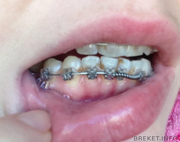 А мне на последнем приеме пружинку поставили и моя двойка стала выходить на свет. Так в том месте, где она плотно прилегала к 1-ке тоже налет не детский, боюсь, что кариес
