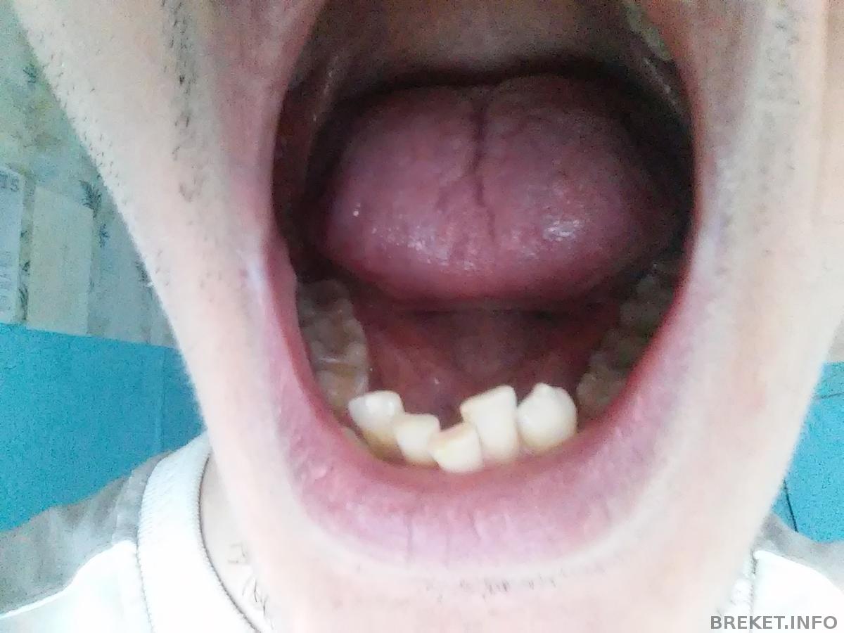 Нижняя челюсть (заметны промежутки из-за удаленных 4-ок)