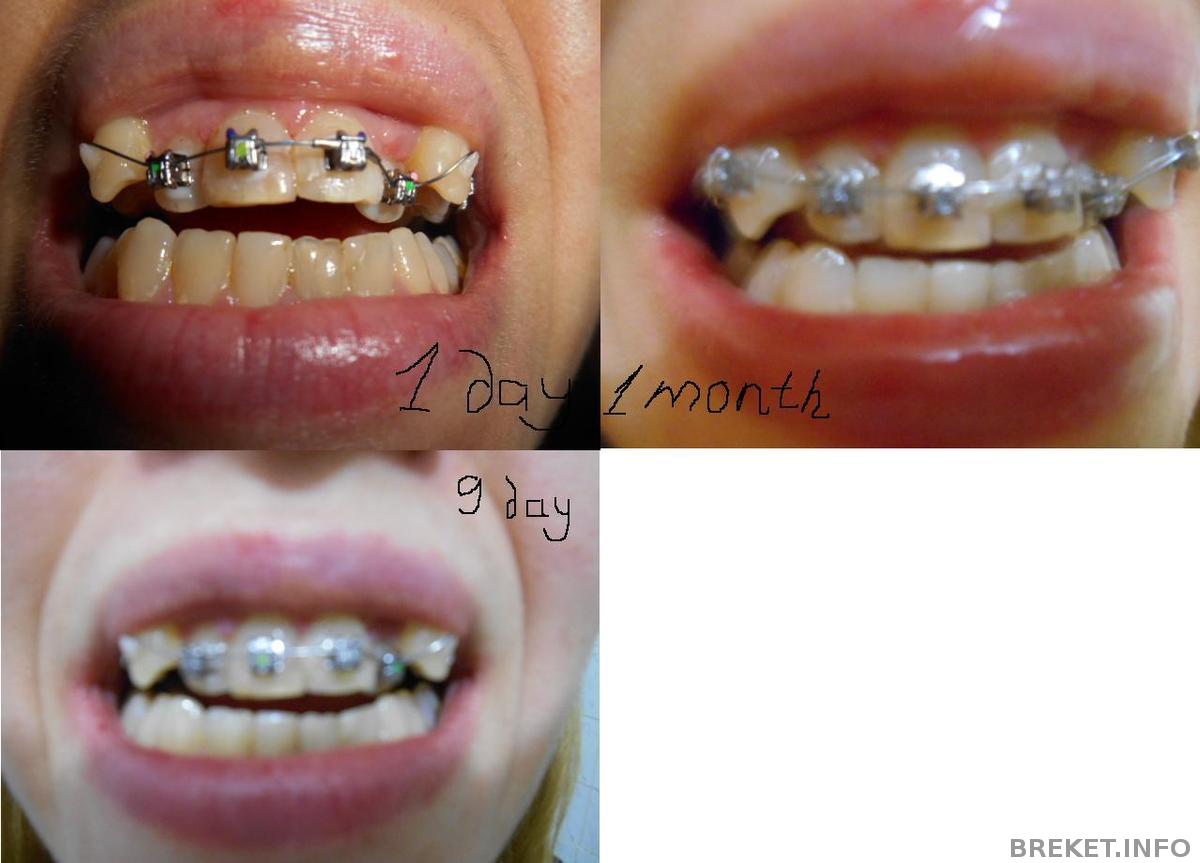 Теперь по существу. Вот и прошел первый месяц, привыкание, шепелявость позади... Теперь брекеты как родные, пломбы не мешаются, ем все и боли почти нет