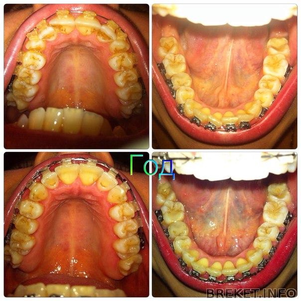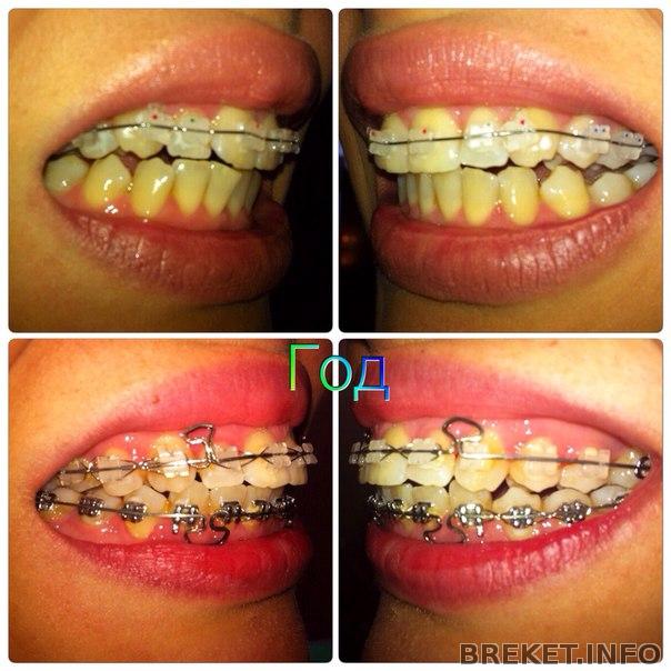 Сейчас орт работает над моим прикусом (то есть наклон вч и расщелина). Но как ни странно, как только он за это взялся месяц назад, с тех пор становится только хуже! Как такое возможно, почему так происходит, я вообще ничего не могу понять?! Просто хочется плакать, от боли которую приходится постоянно выносить от всех манипуляций( а в последнее время они очень жестокие) и от разочарования. Кто-то скажет, что год это немного. Да, может и так, но не в моем случае. Да, зубы стали ровней, не ровные еще, а просто стали ровней! Брекеты уже так надоели. Не могу найти мотивации для радости, ведь вижу, что носить мне их еще лет 100 с такими темпами работы и результатами. Смотрю за фото девченок, которые поставили позже меня и удивляюсь тому, что у них уже все в норме, туда-сюда и снимать. Не знаю сколько буду еще страдать, надо начинать как-то абстрагироваться, иначе впаду в меланхолию. Все-таки заставила себя сделать фото-коллаж на годовщину (хотя не очень-то хотелось) Просто чтобы не быть голословной по поводу моего недовольства: