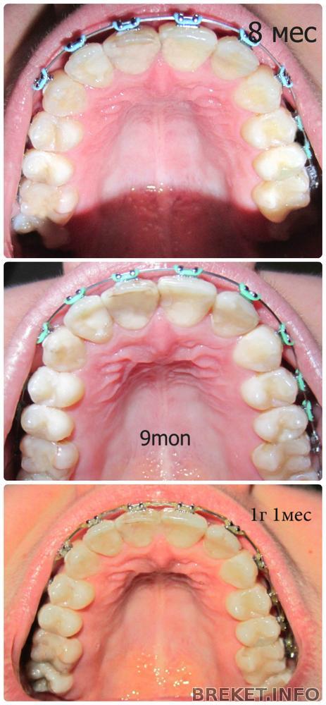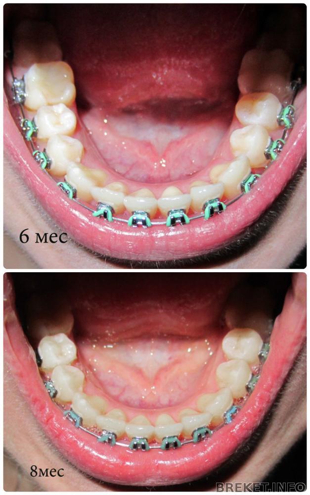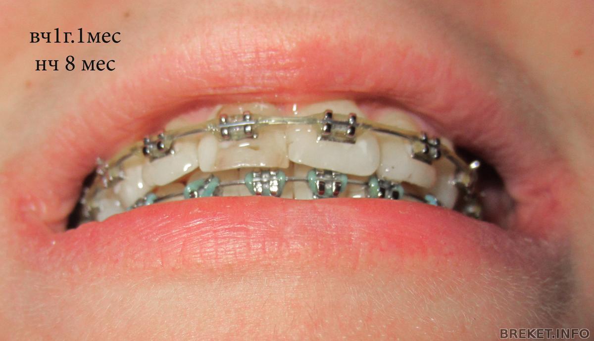 На нч ничего не трогали,кроме лигатур. Там мне все непонятно. Уходит наклон, не уходит. Сломался один брекет. причем очень странно- отлетели ушки сверху и снизу. Теперь лигатура держится на 2 ушках всего. Буду просить,чтоб поменял, тк зуб немного уехал.