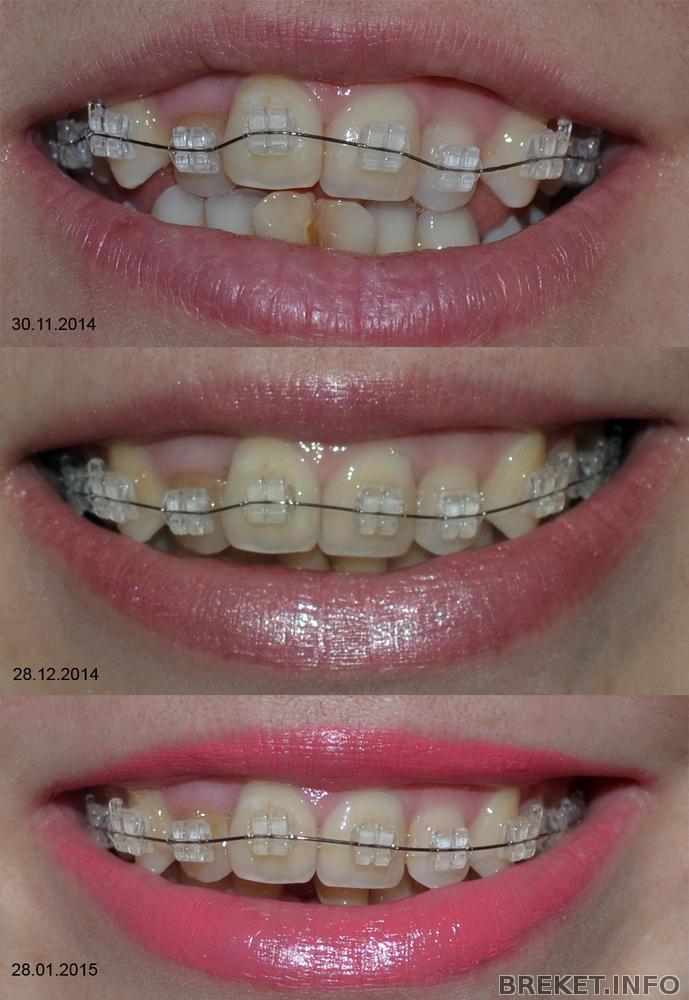 За 2 месяца верхние зубки уже очень хорошо подвинулись. Прилагаю коллажи. Ракурсы немного разные, я криворук