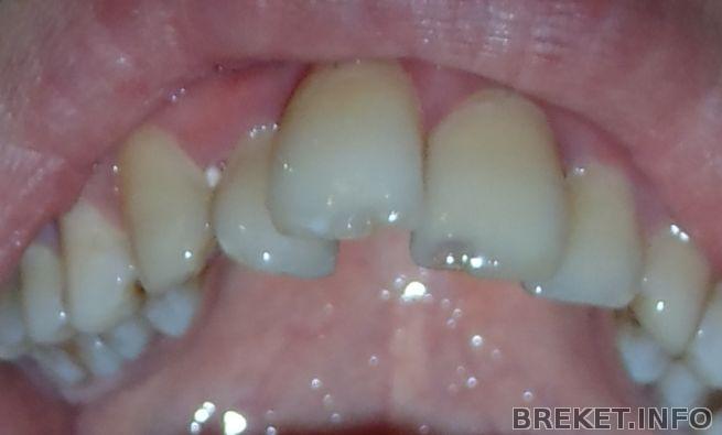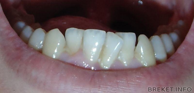Внизу щель затягиваем, потихоньку там становится лучше. Но внизу большие щели из-за отсутствия десны..да и наверху тоже есть щели такие.