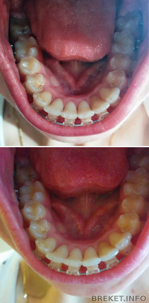 Щель между ВЧ и НЧ есть, однако теперь я постоянно задеваю верхними единицами брекеты на нижних. Не знаю, нормально ли это...