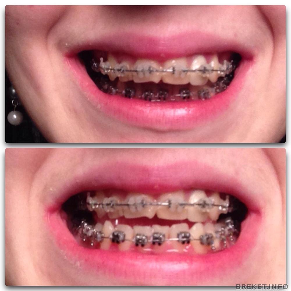 сегодня мне установили челюсть на нижний брекет И поменяли дугу на верхней челюсти, а еще зубы на верхней челюсти перетянули какой-то резиночкой крест на крест, на самом деле вообще почти незаметно.