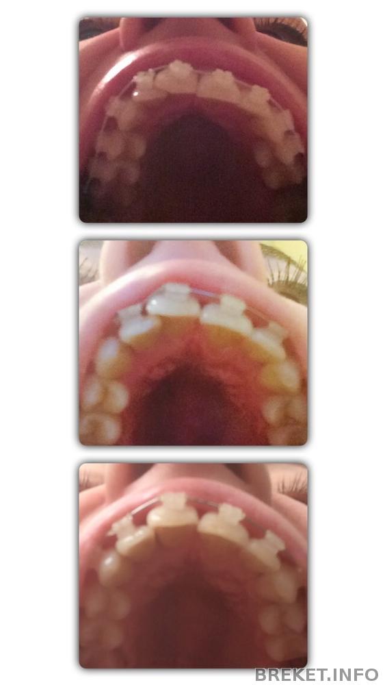 Всем привет!Заработалась я)))долго не писала,не выкладывала фото.Время идет и уже целых 4 месяца,я все больше люблю брекеты,за те чудеса,которые творятся.Мне поменяли дуги на НЧ и ВЧ,на один из брекетов поставили металлическую лигатуру,подпилили нижние 1ки/2ки и ... предупредили что в следующий визит запланирована сепарация.Выкладываю результат проделанной работы,извините ,немного разные цвета на фото-не разобралась какой фильтр использовала когда фотографировала 1й раз,общий вид+наконеееец-то моя двойка становится на место)))
