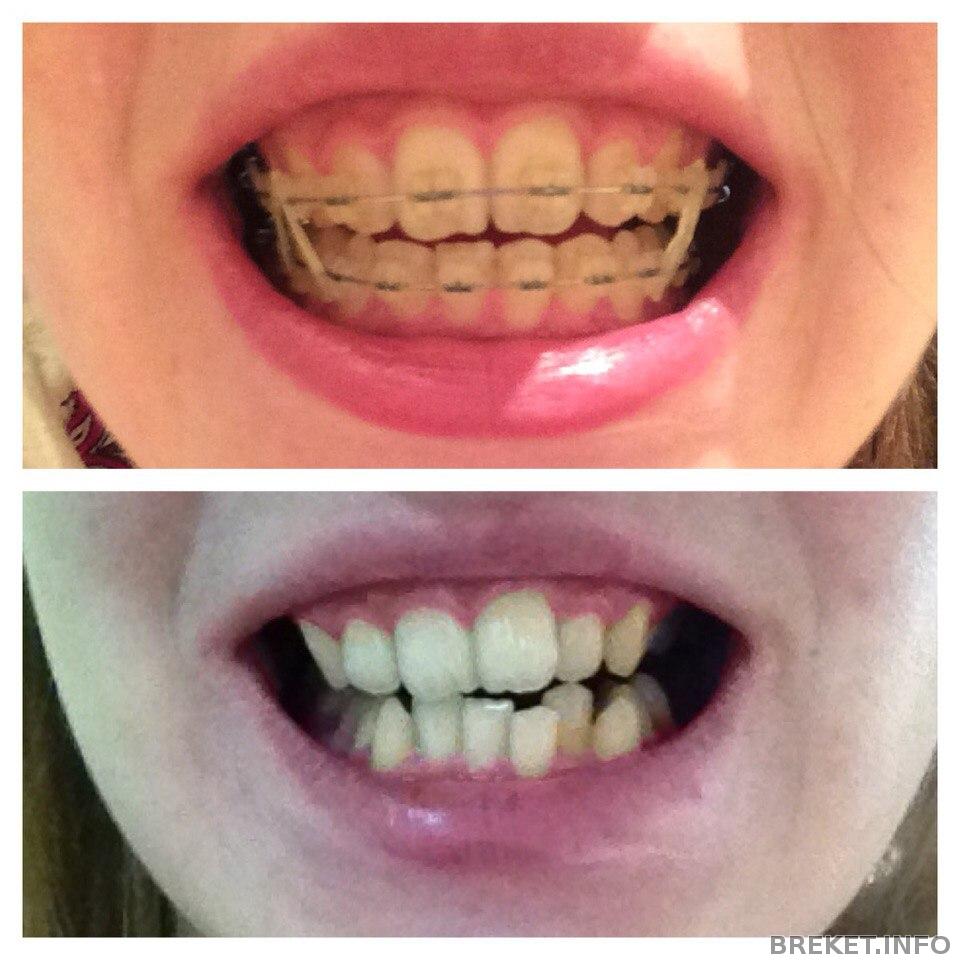 Месяца 4 назад, когда брекеты стояли на НЧ только 2 месяца, у меня по очереди отлетают два брекета на 4-ке и 5-ке. Ходила месяц без них, но виновата сама, я не ем в пластинке, днем я в ней не хожу, ибо я могу контролировать то, в каком положении моя челюсть, это моя ошибка, каюсь. Ночью забыла одеть пластинку и вот результат, два брекета висят на дуге. Позвонила в клинику, сказала что нужно заказать, но моих брекетов не оказалось в наличии, поэтому директор клиники, посовещавшись с врачом, решили что можно установить два бркета из другой системы. Я согласилась. Приехала устанавливать их и осознала всю прелесть полировки зубов от клея...жуть...даже думать не хочу о снятии. Поставили два брекета и собственно с ними я хожу до сих пор. Ничего не отлетело, одеваю пластинку на ночь =))) Днем игнорирую ее.