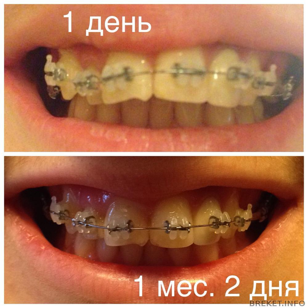 Уже 1 месяц и 2 дня я с брекетами на верхней челюсти, зубы то болят то нет, вот сегодня, например, жутко болят единица и двойка. как мне кажется, маленькие изменения есть, моя утопленная двойка вроде немного вылазит вперед, а между другой двойкой и тройкой появилась небольшая щель, но может мне кажется)))