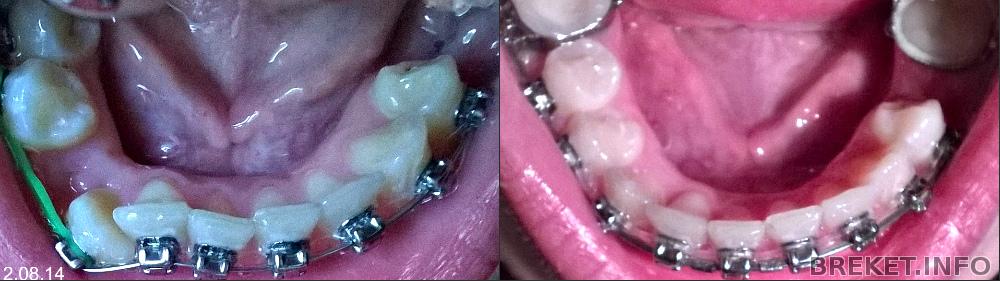 1. Бодрее всех идет левая (на фото соответственно справа) двоечка, очень заметно опустилась. Рядом с ней же приподнялся клык, и вообще эта половина меня не перестает радовать