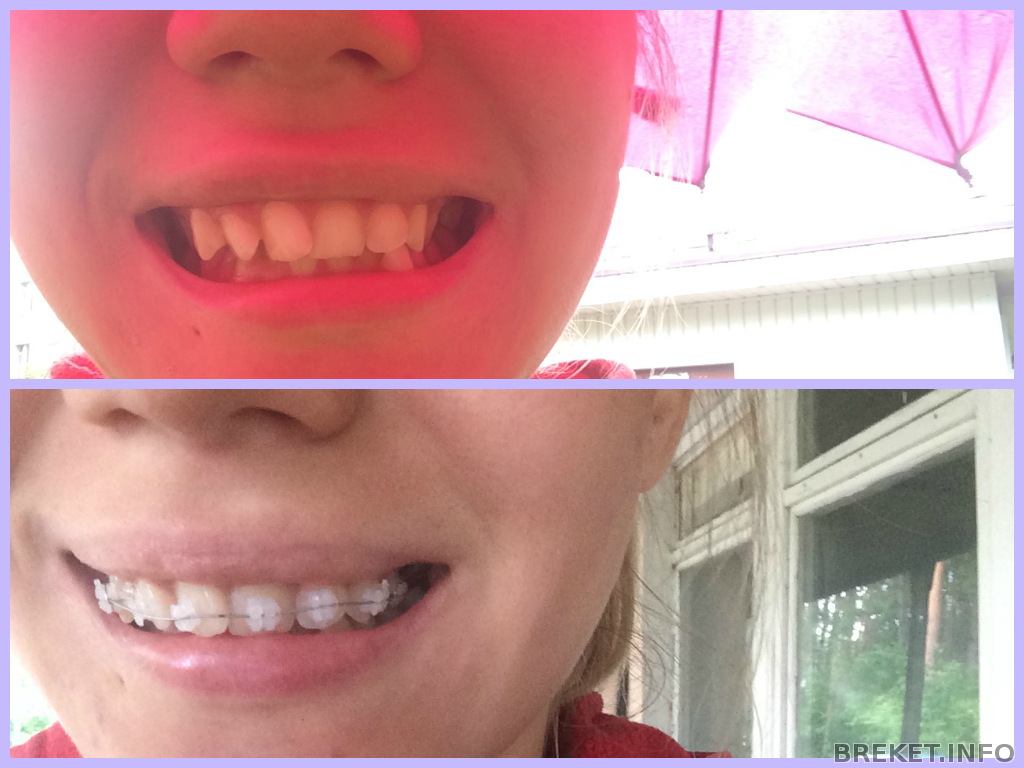 Единички вперед начинают уходить, торчать как у зайца.. Хотя щель меж ними затянулась и образовалась другая, между двойкой и клыком с правой стороны..