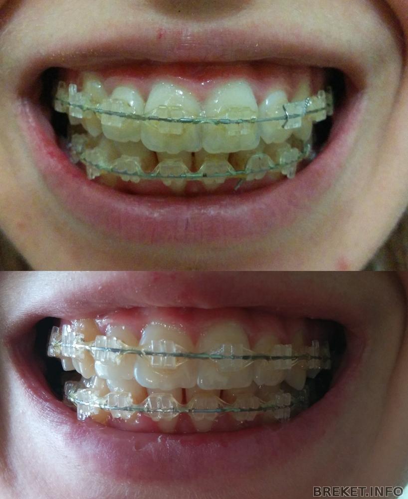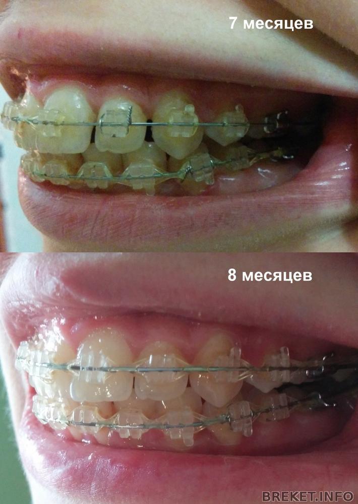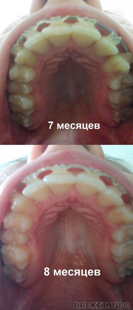 Очень повредились края десен, и все из-за этого во рту кажется соленым, да и болит. Рентейнеры наклеили на обе челюсти.