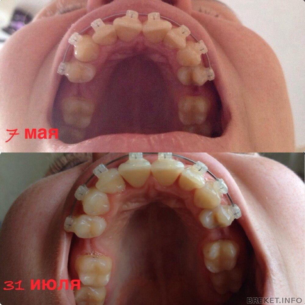 Итак, брекеты - 8 месяцев, тяги - 2 месяца, та самая умная дуга на ВЧ, которая опускает зубы - не помню сколько, тоже пару месяцев (но вчера я с ней распрощалась).