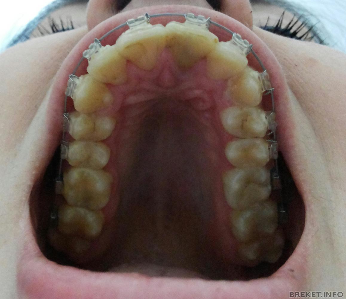 20 марта был прием,но руки дошли написать только сегодня. Для себя,чтоб не забыть: на вч и нч теперь стоят прямоугольные дуги ТМА, 19*25,орт говорит,что эти дуги будут последними,хотя есть еще и стальные,но можно и без них обойтись. На скорую руку сделала фото,на память,вроде бы ничего не меняется. На фото не видно,между правым клыком и двойкой щель 2 мм,ее сейчас затягиваем,для этого орт связала металлической лигатурой все зубы по обе стороны от щели,а на щель надела чейн. Что-то пока результата ноль,щель не уменьшается...