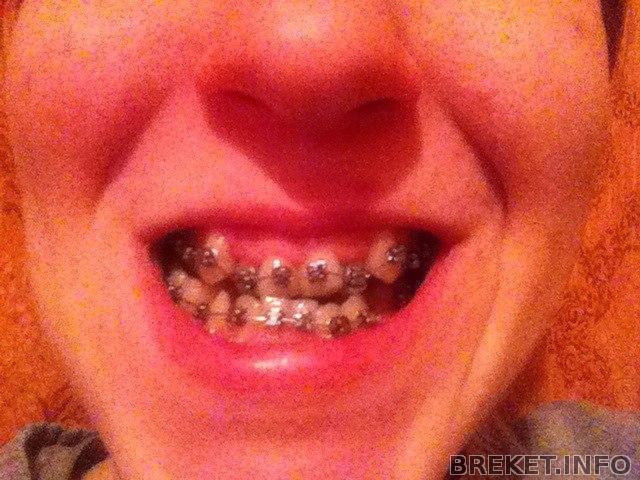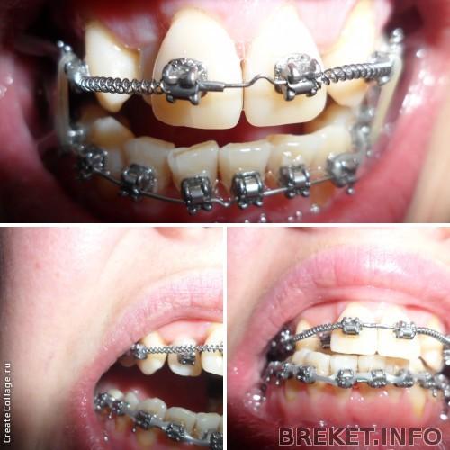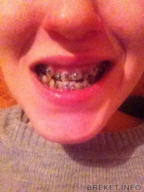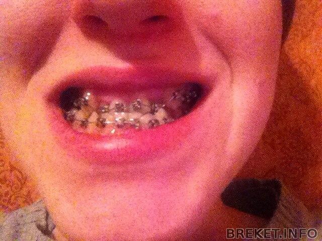 один брекет с НЧ, вроде единичка, переклеили там брекет. Доктор сказал, что она стояла криво, теперь ровно встала, нужно переклеить.