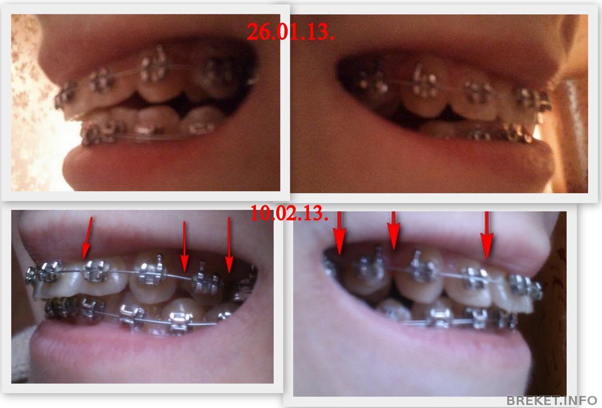 Ну я вот смотрю в зеркало, и не могу понять что изменилось за 2 недели( но верхние зубы конечно не касаются теперь нижних брекетов,никак не перекрывают.