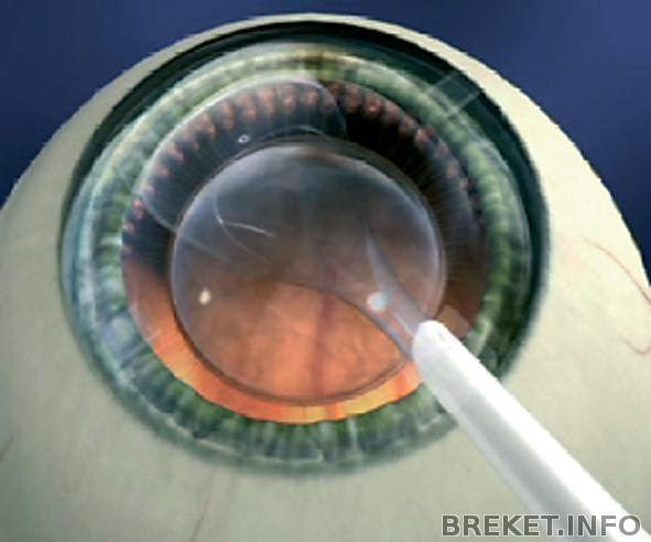 Положение линзы в глазу в конце операции.