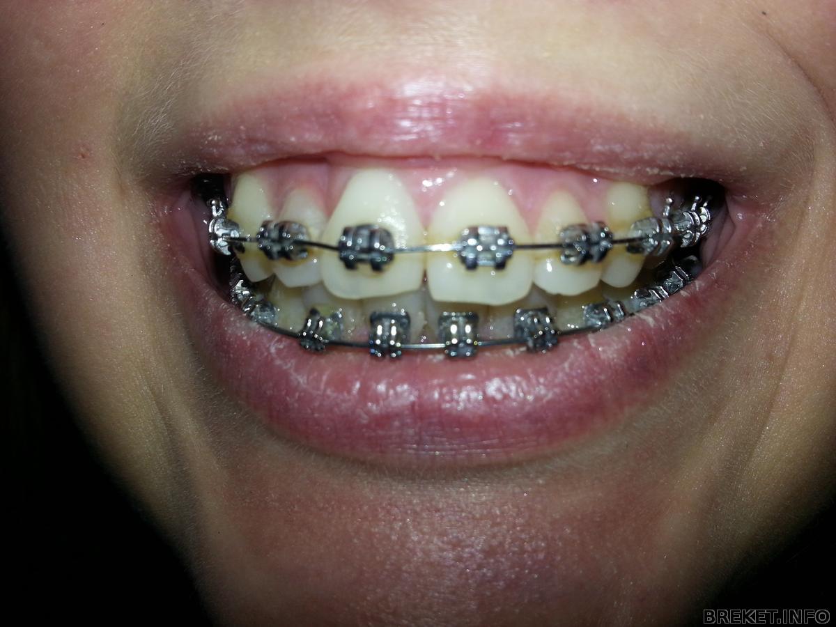 чтобы зубы закрепить вместе, обычно надевают проволоку зиг-загом, вместо эластичной цепочки, так что может так и надо - что она сняла и ничего не надела взамен?