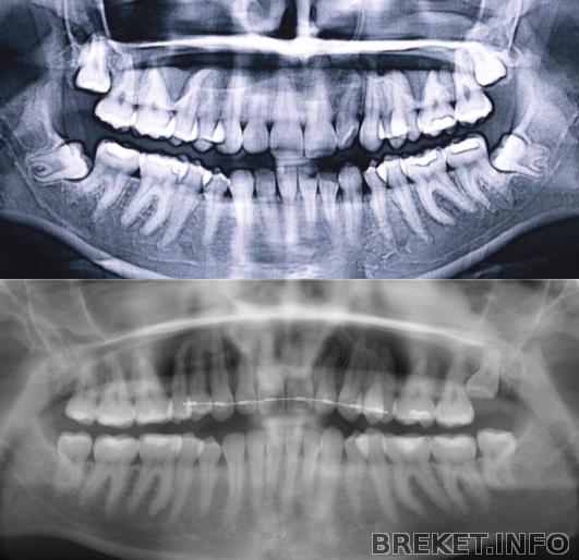А у вас на снимочке видно, что одна восьмерка явно не так расположена, вообще лежит почти, другая восьмерка тоде наклонена, а из-за нее ещё два зуба.
