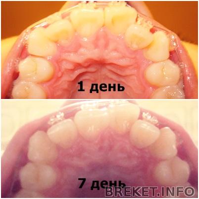Уже ничего не болит, смело кушаю все что угодно, брекеты не задевают губы да и вообще я иногда о них забываю)
