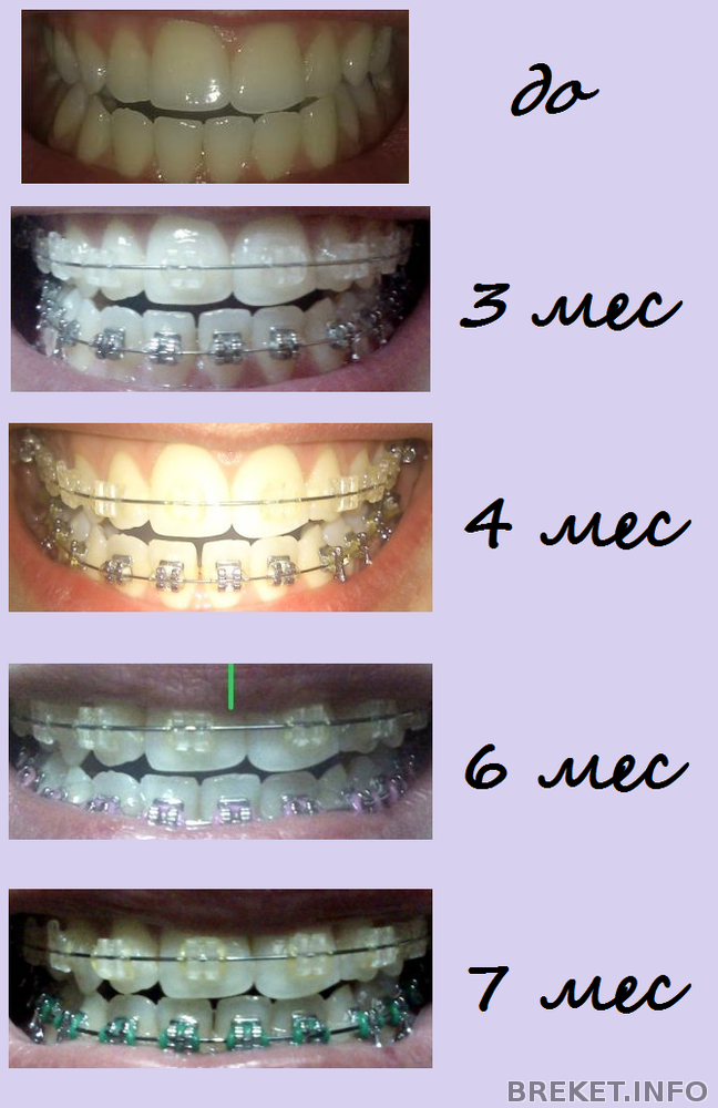 уже 7 месяцев, я просто не могу поверить.. у меня уже было две поломки : один раз скусила брекет, когда ела сникерс. после того случая сникерсы не ем, хотя порой ах как хочется.. вторая была 1,5 недель назад : отломался крючок от верхней 4ки. слишком агрессивные силы, значит, в моих тягах от 4ок до клыков)) из-за аварии ношу только с 6ок на клыки ииии......