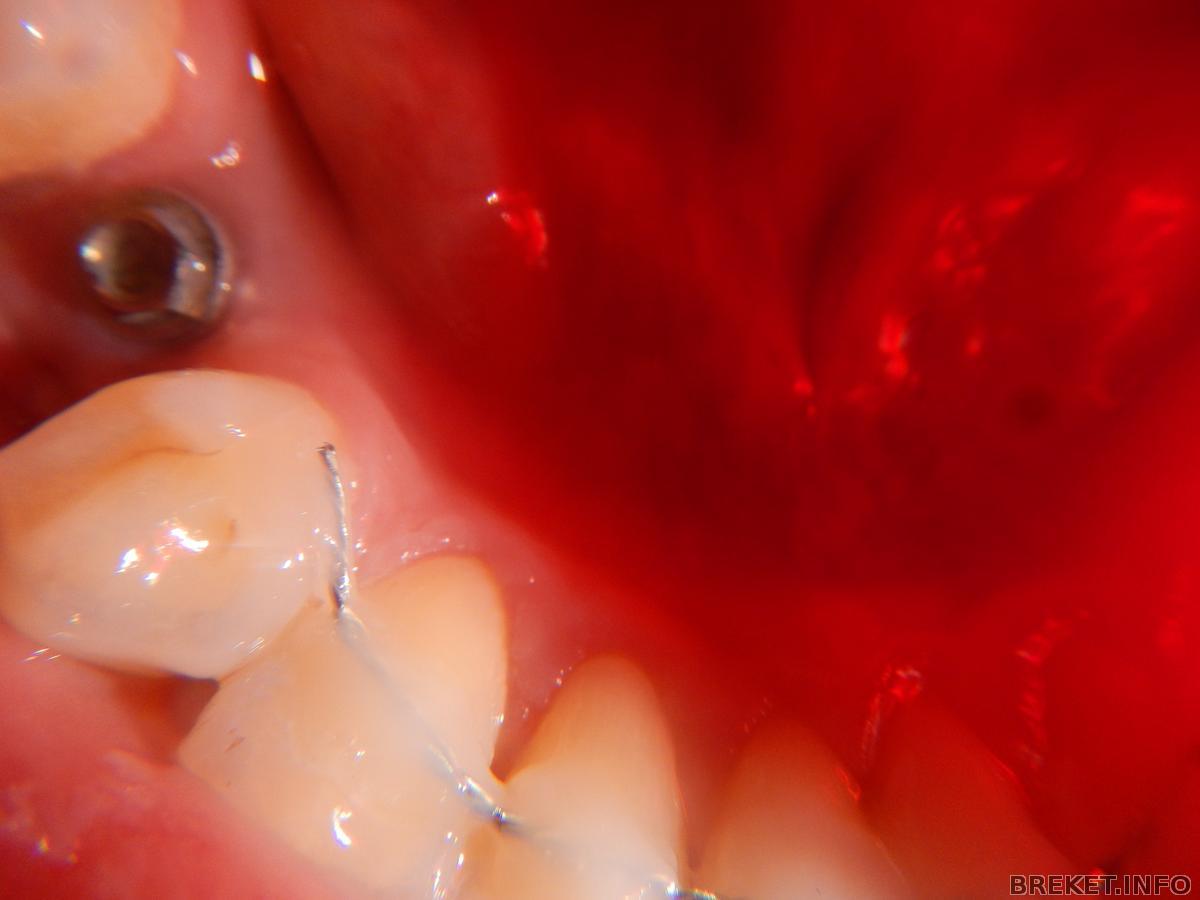импланты ставят в конце за 3-4 мес до снятия.(как мне объяснили) ну вот и вышло,что импланты, вместе с БС сейчас перез самими зубами сняли низ, тк слепки с брекетами не сделать. ну и потом верх подгонят под зубы и снимут.