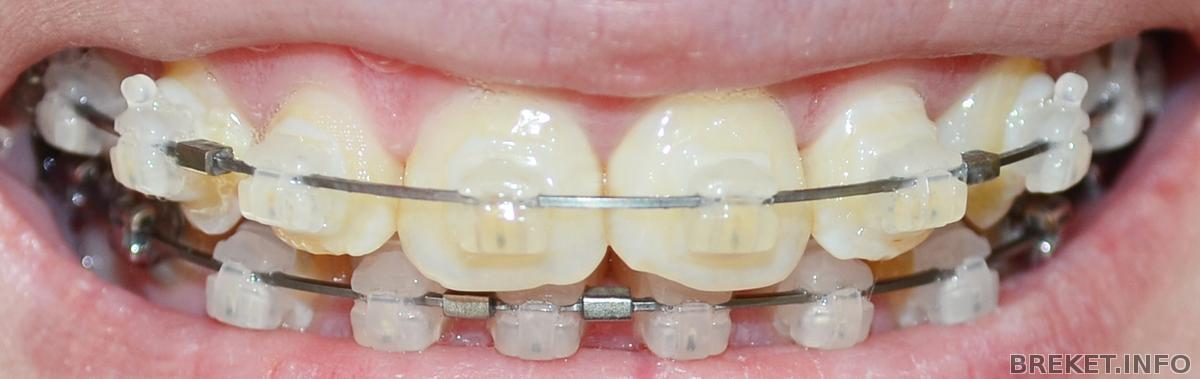 Краткий рассказ. С начала августа мне выдали тяги- Rabbit, (мне надо было поставить на место свои клики)я вот их носила до 28 октября, т.е. почти 3 месяца, по 15 часов в день. и плюс у меня в этом периоде были установлены специальные резинки (не знаю ихнее медиц. название) которые держали сначала первые передние 4 зуба на ВЧ (без клыков), а после полтора месяца когда образовалось пространство между клыком и вторым зубом, сделали активацию и положили ту резинку на передние 6 зубы, т.е. охватили и клыки, и опять же под действием тяг, пространство исчезло. Но после последней активации дуг, мне сняли эту резинку и сказали сделать перерыв 10-14 дней, и продолжить носить те же тяги, только 17 ч./день. и самое интересное, что поменяли замочки на брекеты, обычно они стоят по середине (на первый правый/левый) а тут у меня один на втором с лева, а другой на второй с права...))) что я говорю, посмотрите сами, и уже появилось снова пространство между клыком и двоечкой )) (немножко фото не по центру, но разредился аппарат и не успела сделать еще одно)