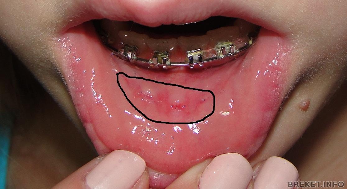 У меня дуга врезалась в щеку что след остался, ну и брекеты царапаются бывает, особенно когда резинки железные ставят ((